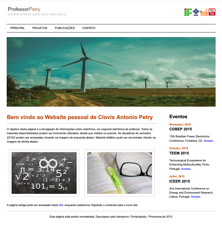 Transição da página elaborada durante a atuação como docente na UFSC para a nova finalidade, agora atuando como docente no CEFET/SC, atualmente o IFSC.