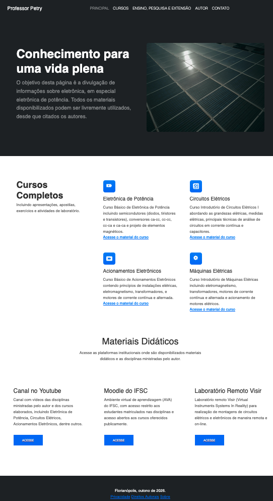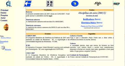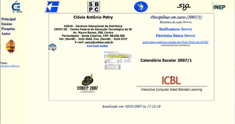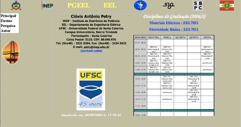Elaboração da página a partir das versões mais antigas, em função da atuação como docente no Curso de Engenharia Elétrica da UFSC, com o objetivo de disponibilizar materiais didáticos para os estudantes. A página foi elaborada usando o software de edição Frontpage.