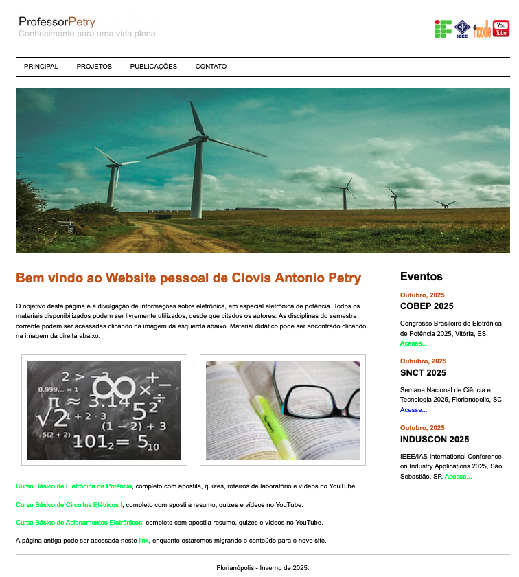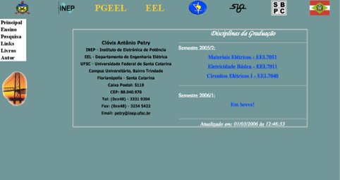 Elaboração da página a partir das versões mais antigas, em função da atuação como docente no Curso de Engenharia Elétrica da UFSC, com o objetivo de disponibilizar materiais didáticos para os estudantes. A página foi elaborada usando o software de edição Frontpage.